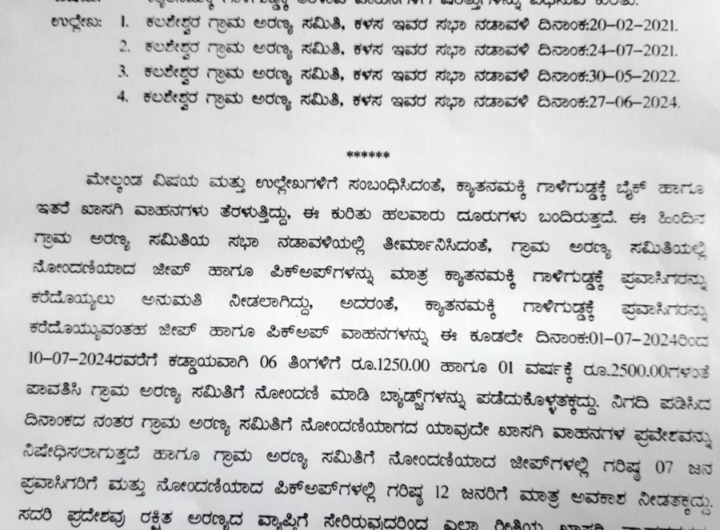 ಕಳಸ:ಬಲಿಗೆ ಗ್ರಾಮದ ಕ್ಯಾತನಮಕ್ಕಿ ಪ್ರದೇಶಕ್ಕೆ ಪ್ರವಾಸಿಗರನ್ನು ಕರೆದೊಯ್ಯಲು ಇಲಾಖೆಯಲ್ಲಿ ನೊಂದಾಯಿಸಿದ ವಾಹನಗಳಿಗೆ ಮಾತ್ರ ಅವಕಾಶ ಎಂದು ಕಳಸ ವಲಯ ಅರಣ್ಯಾಧಿಕಾರಿ ನಿಶ್ಚಿತ್...