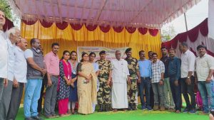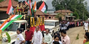 ಬುಧವಾರ ಬೆಳಿಗ್ಗೆ ಕೆಪಿಎಸ್ ಶಾಲಾ ಆವರಣದಲ್ಲಿ ಕಳಸ ಗ್ರಾಮ ಪಂಚಾಯಿತಿ ಆಯೋಜಿಸಿದ್ದ ಕಾರ್ಯಕ್ರಮದಲ್ಲಿ ವಿವಿಧ ಶಾಲಾ ಮಕ್ಕಳು ನೆರೆದು ಯೋಧನಿಗೆ ಗೌರವ ಸಲ್ಲಿಸಿದರು. ಆನಂತರ ಕಳಸ ತಾಲ್ಲೂಕು ಆಡಳಿತದ ಪರವಾಗಿ ತಹಶೀಲ್ದಾರ್ ಕಾವ್ಯ ಮತ್ತು ಸಿಬ್ಬಂದಿ ರಾಜಪ್ಪ ಅವರಿಗೆ ಮೈಸೂರು ಪೇಟ ತೊಡಿಸಿ ಸನ್ಮಾನಿಸಿದರು.